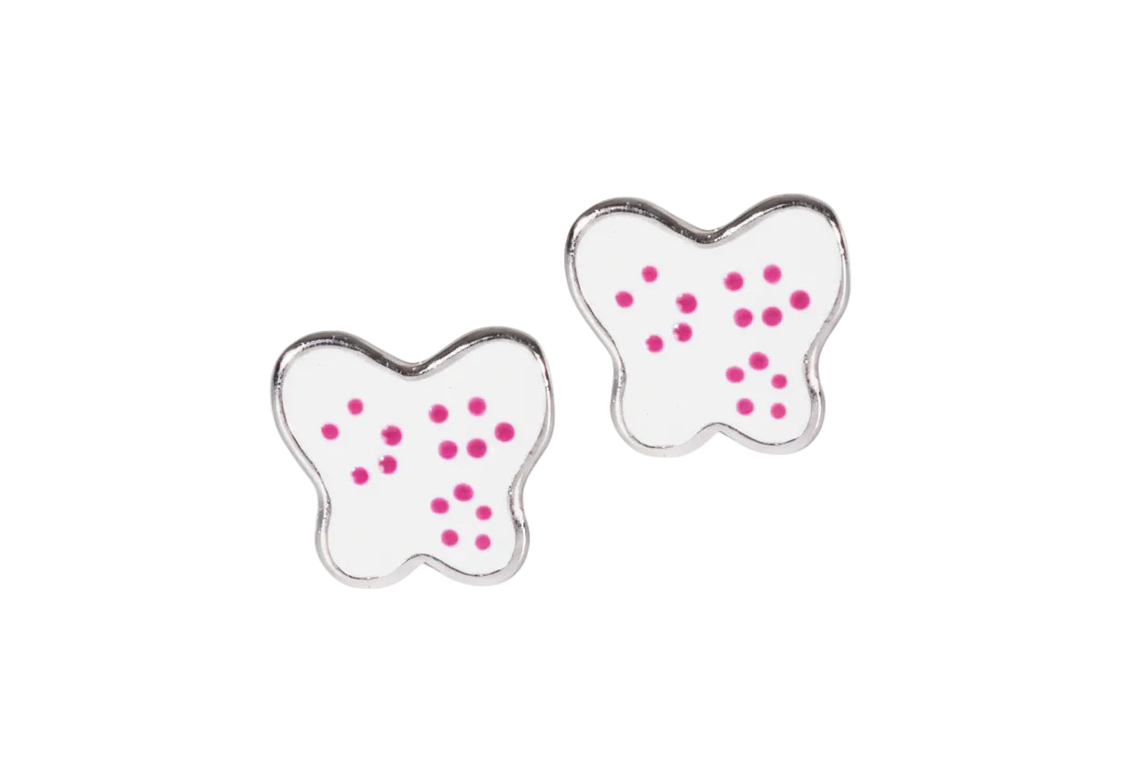 Σκουλαρίκια πεταλούδα από ασήμι 925 με λεπτομέρεια από σμάλτο.