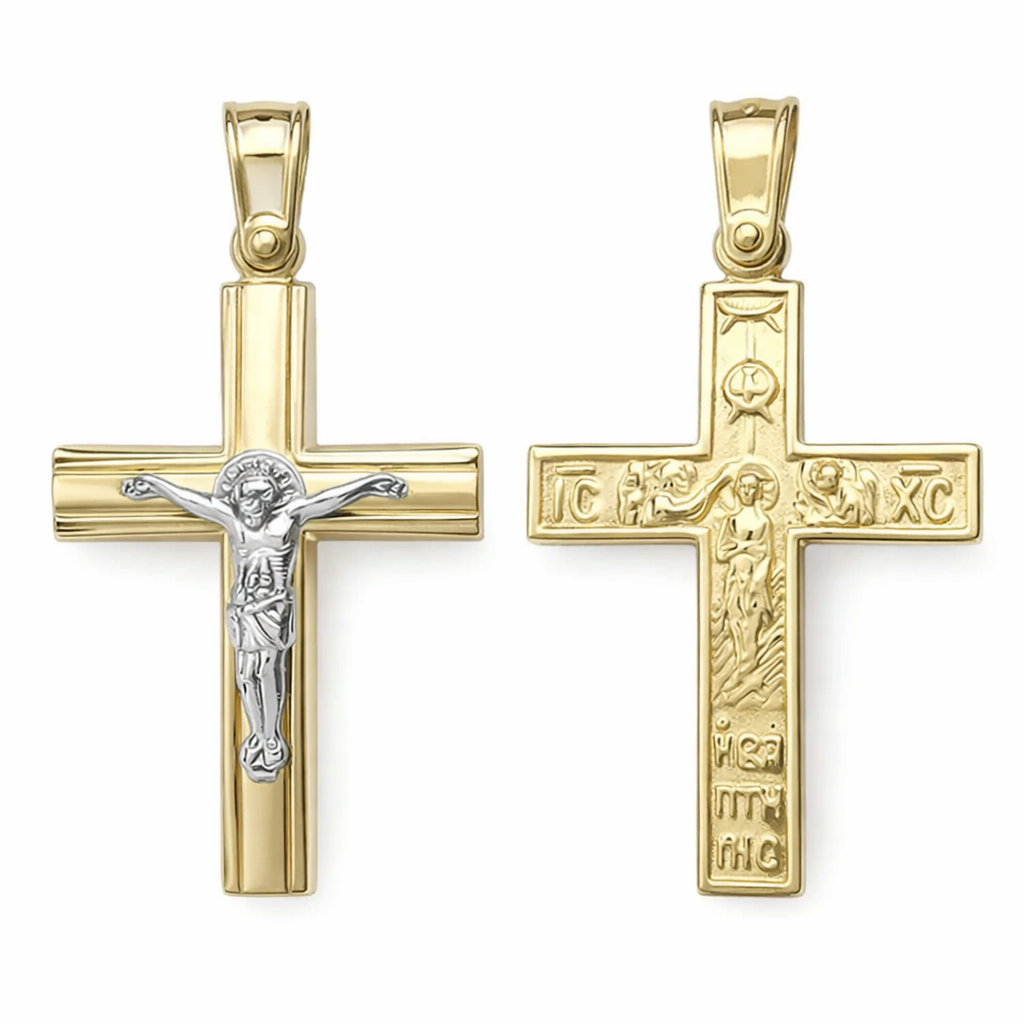 Σταυρός διπλής όψης σε χρυσό, δίχρωμο με σταυρό, χρυσός 14 καρατίων