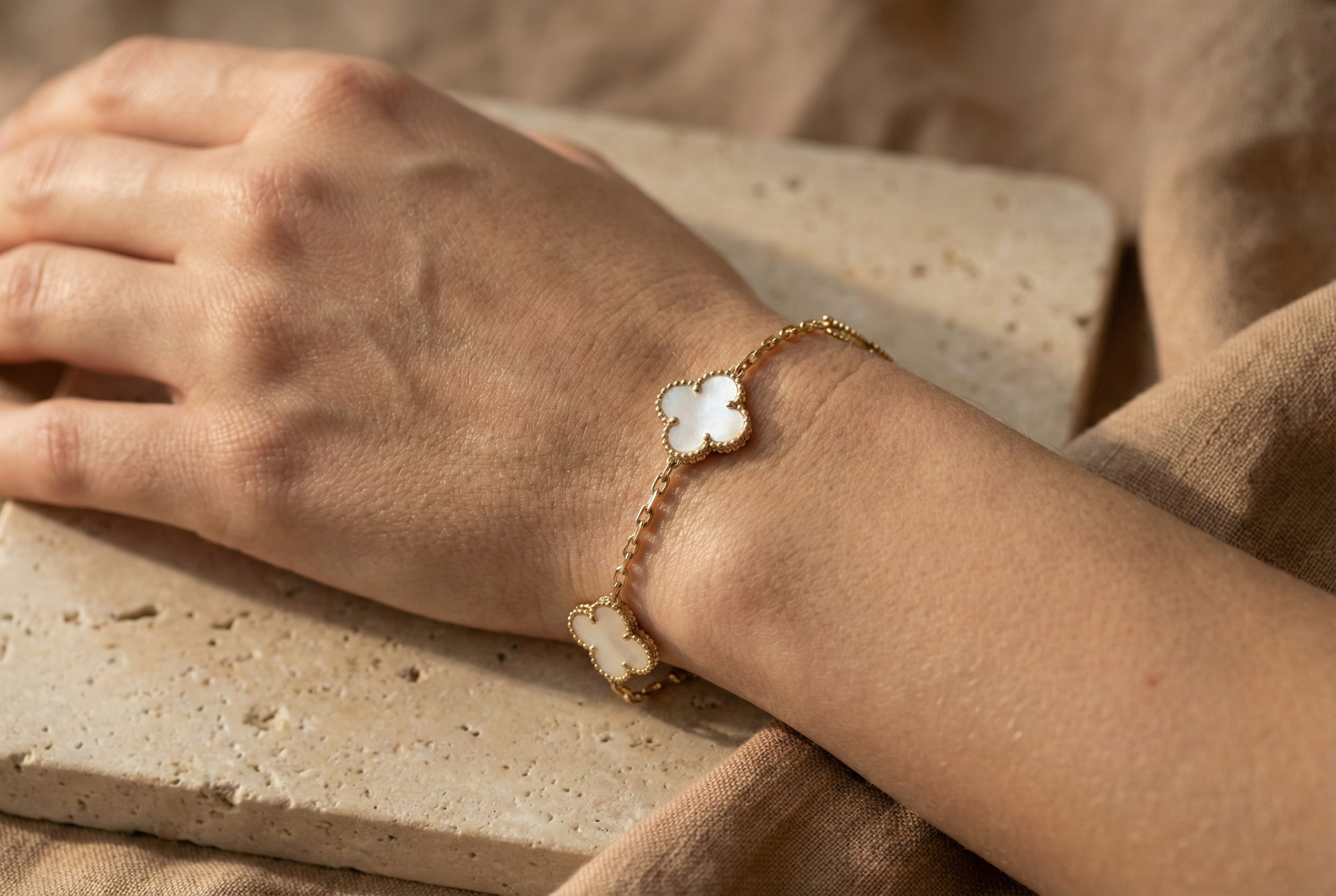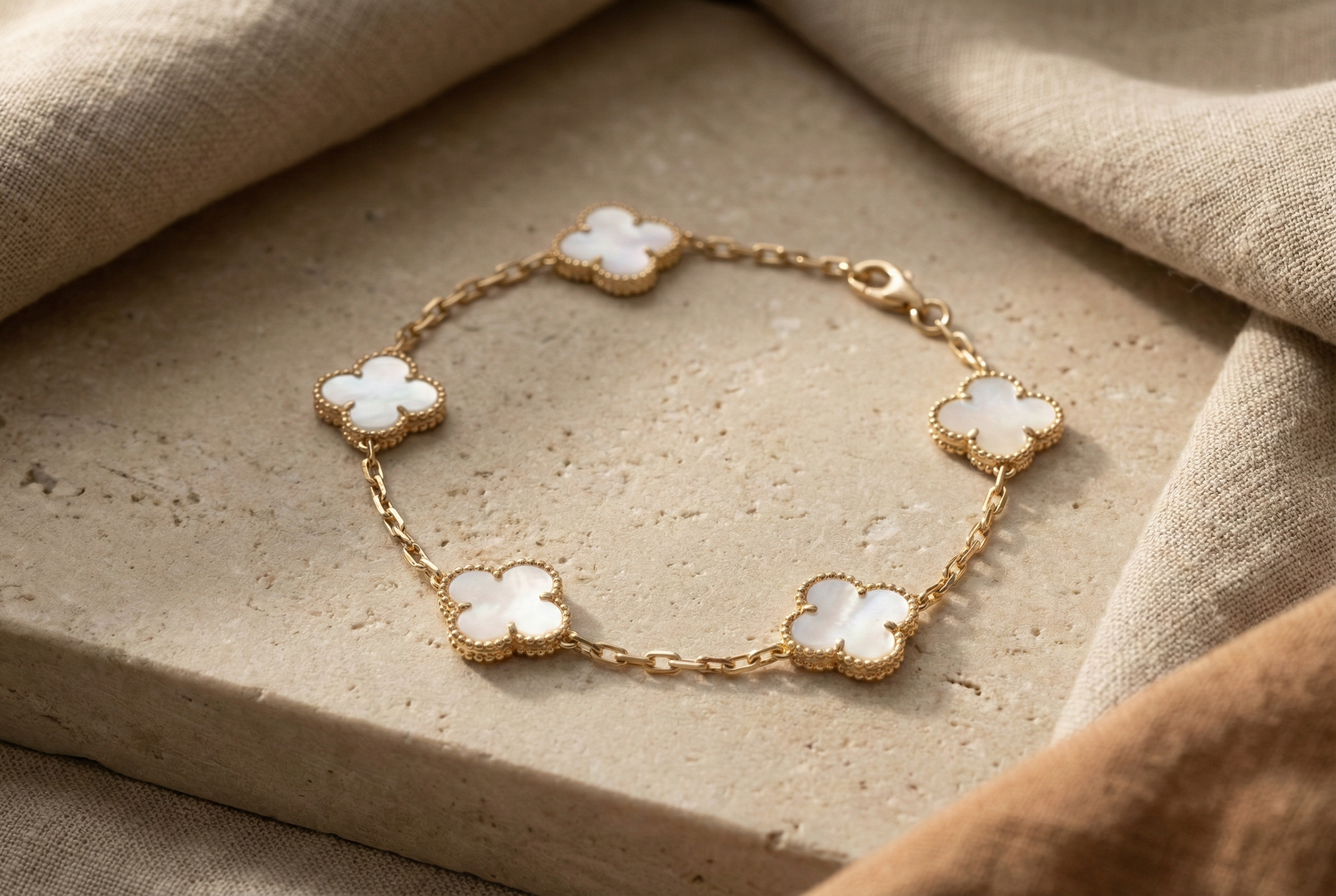 14K Gold Bracelet with 5 Mother-of-Pearl Elements (10 mm)