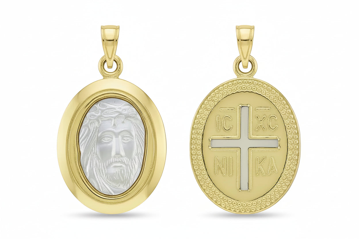 Children’s Double-Sided Konstantinato Pendant with Christ Head, 14K Gold