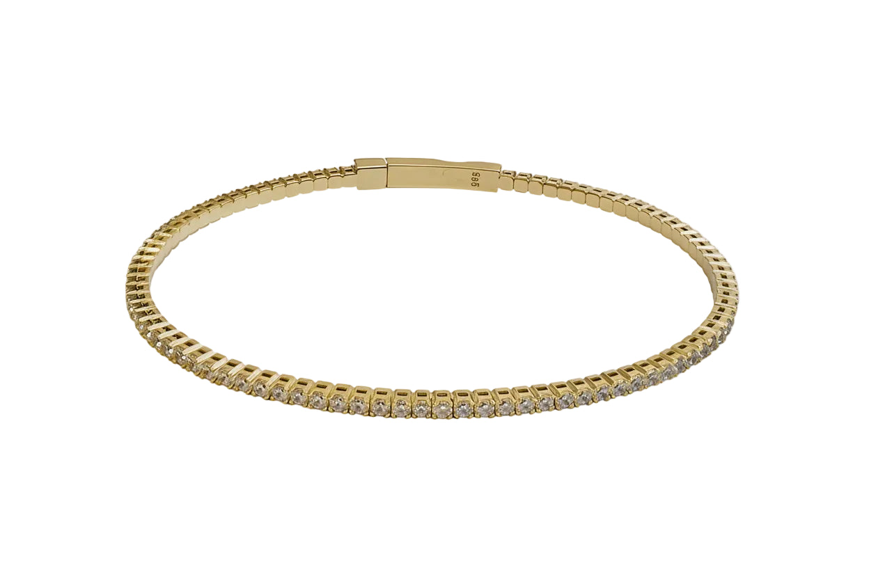 Riviera bracelet crafted in 14K gold featuring continuous white zircon setting.