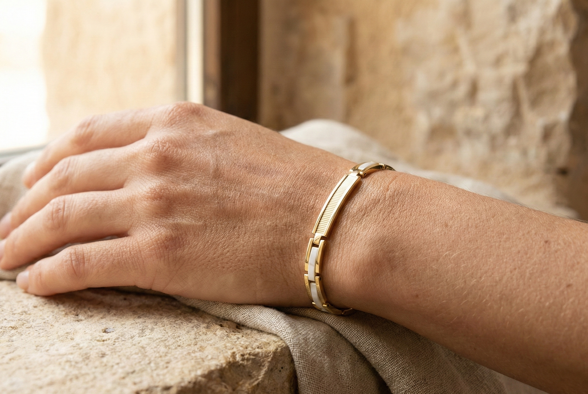 Men’s Two-Tone Hinged Bracelet, 14K Gold