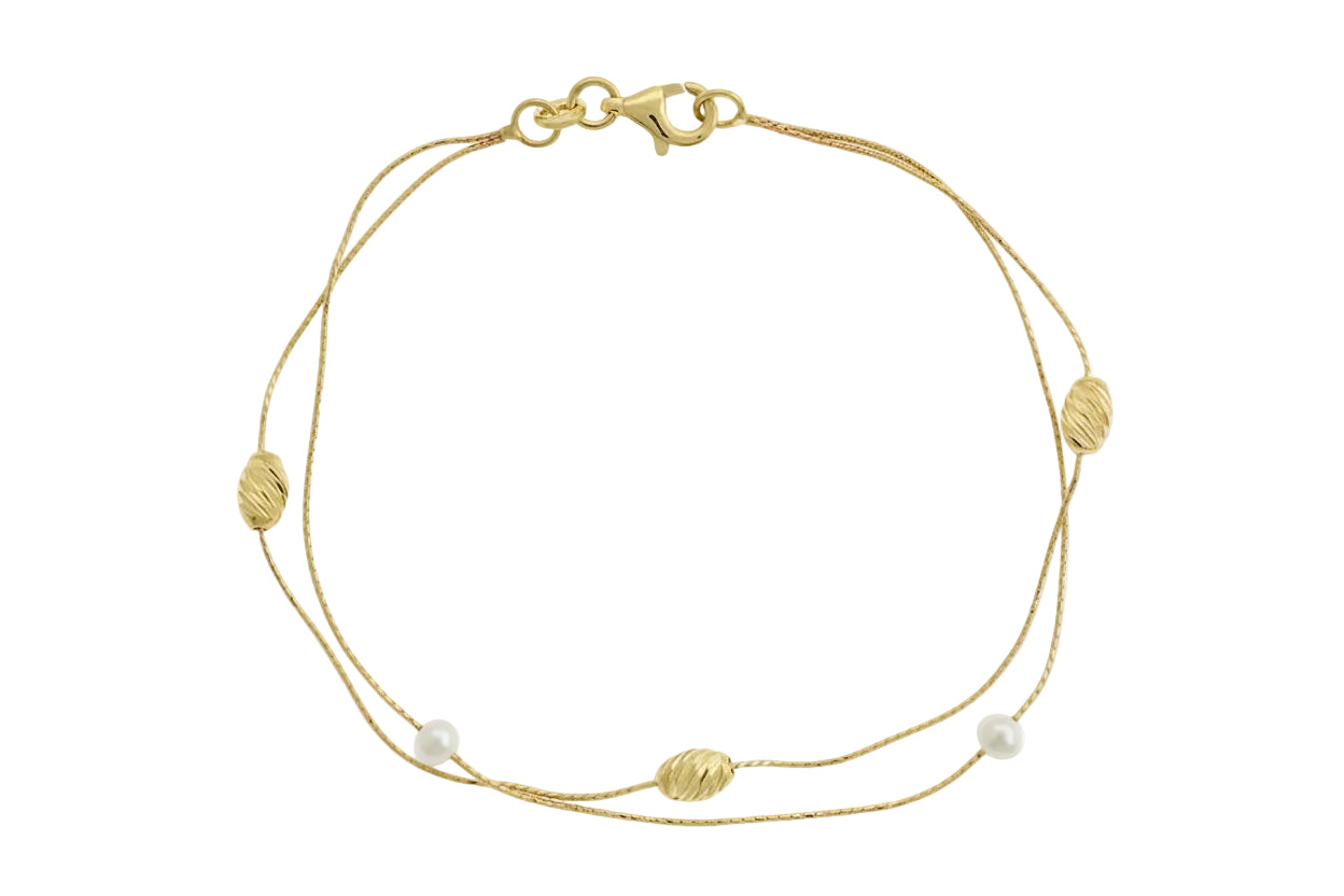 Double-layer bracelet crafted in 14K gold featuring pearls and gold beads.