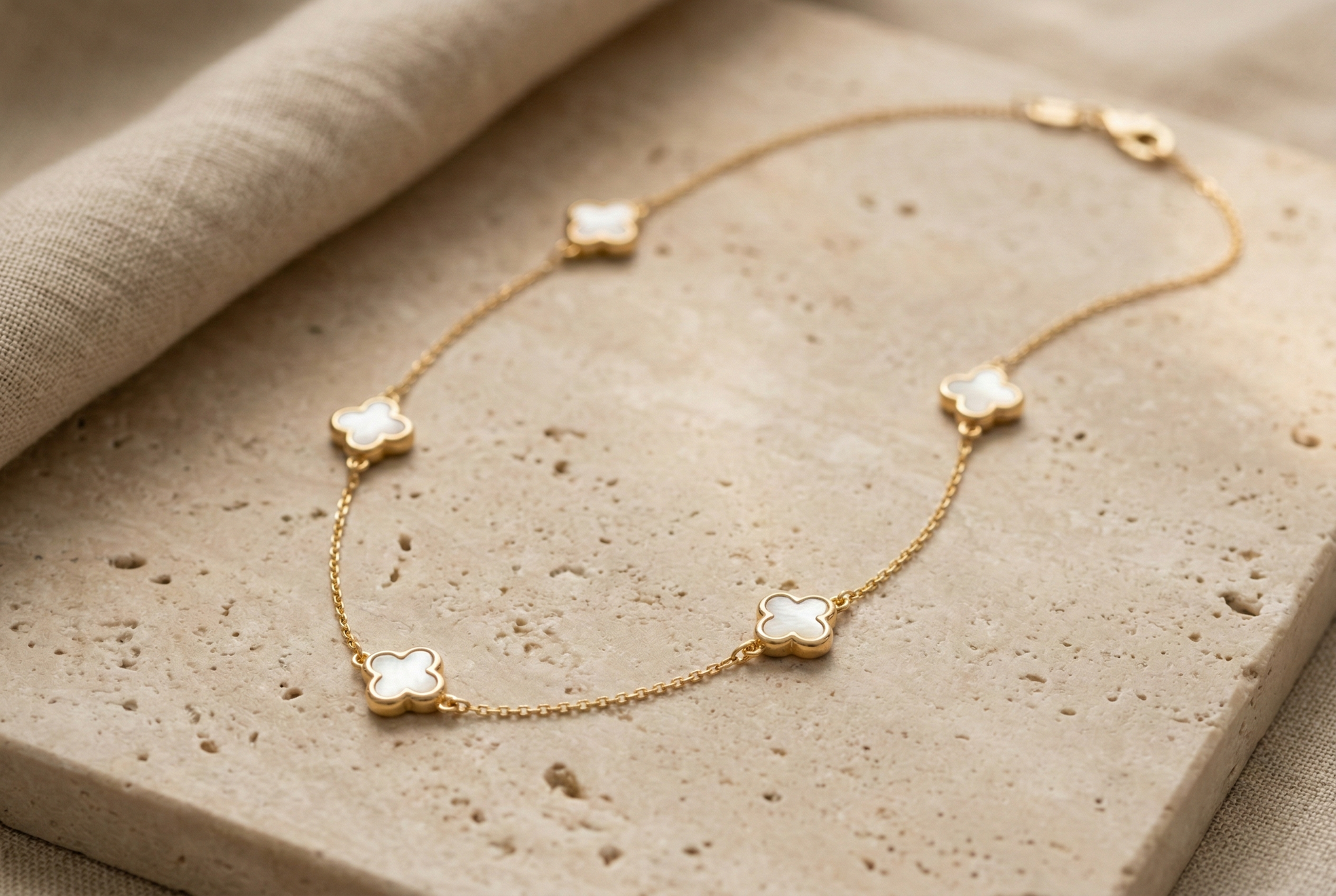 Women’s Gold Necklace with Five (5) Mother-of-Pearl Elements, 14K Gold