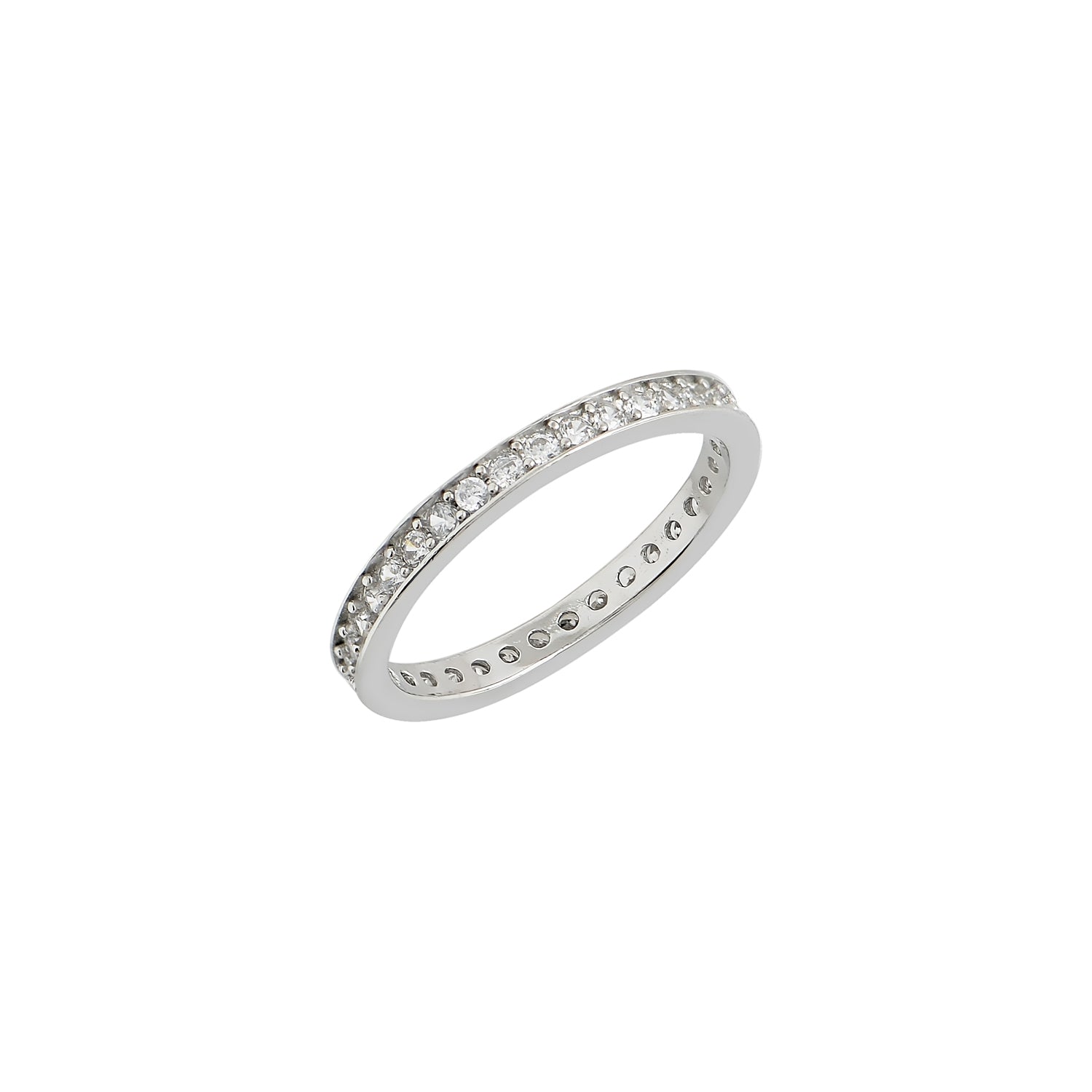 Full eternity ring crafted in 925 sterling silver featuring continuous white zircon stones.